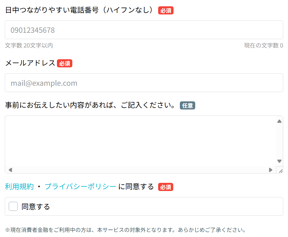 相談内容や申込情報にウソがあったり、マナーが悪いなどあれば、対象外になる可能性があります。